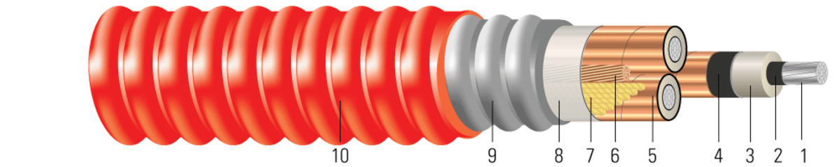 Southwire’s 15KV cables are suited for use in wet and dry areas, conduits, ducts, troughs, trays, direct burial, and where superior electrical properties are desired. These cables are capable of operating continuously at the conductor temperature not in excess of 105°C for normal operation, 140°C for emergency overload, and 250°C for short circuit conditions. Rated at -35°C for cold bend when UL listed. Rated at -40°C for cold bend and cold impact and marked with "LTGG" when CSA listed or dual UL/CSA listed. For uses in Class I and II, Division 2 hazardous locations per NEC Article 501 and 502.Rated for 1000 lbs./FT maximum sidewall pressure.